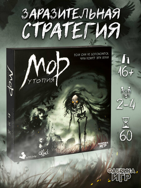 «Мор. Утопия» — это сюжетная настольная игра, созданная во вселенной культовой видеоигры Pathologic board game / Мор. Utopia от студии Ice-Pick Lodge. Игра переносит вас в мрачный город, охваченный эпидемией, где каждое ваше решение влияет на судьбу. По-настоящему взрослая настольная игра станет для Вас «симулятором выживания в условиях эпидемии». Вы берёте на себя роль одного из трёх главных персонажей: ученый Бакалавр, сын знахаря Гаруспик и Самозванка — не то сумасшедшая, не то святая. В ходе настольной игры исследуете локации, принимаете морально сложные решения, вступаете в диалоги и разгадываете тайны. Все трое знают, как спасти город, — но методы их, увы, несовместимы. Удастся ли им забыть о разногласиях перед лицом общей беды? Вряд ли. Но другого шанса у города не будет, ведь болезнь нельзя застрелить или одолеть силой. Только переиграть. Один из игроков берет на себя роль Чумы. Эта роль понравится тем, кто любит хитрить, действовать скрытно, ломать планы соперников, играть против всех и в целом быть главным злодеем. Остальные игроки становятся врачами. Эта роль подойдет тем, кто любит договариваться, обманывать союзников, продумывать ходы, следить за протекающими в разных концах карты процессами и снова обманывать союзников. У каждого из них есть свои сильные стороны, но поодиночке они все равно не сумеют противостоять Чуме. Персонажам врачей придется заключать временные союзы и строить совместную стратегию. Но победитель в игре только один. Он получит все — а остальные сгинут напрасно. Сюжетная настолка подходит как для дуэльной игры, так и для компании из 4 человек. Второе издание значительно доработано: обновлены компоненты, улучшены тексты и баланс. Кому подойдёт эта игра: — Фанатам оригинальной игры Мор. Утопия — Любителям сюжетных и атмосферных настолок — Тем, кто ищет парную игру или для компании — Настольным гикам, ценящим сложный лор и моральный выбор