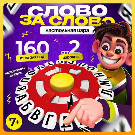 Настольная игра «Ловлю на слове» заставит вас напрячь свои извилины и перебрать все когда-то услышанные слова, чтобы назвать животное на К или что-то железное на О. Особенности Подходит для двух и более игроков — весело как вдвоём, так и в большой компании. Рекомендована для детей от 7 лет, но будет интересна и взрослым. Идеальна для отдыха дома, на вечеринке или в поездке. Как играть? Вытяните карту с темой и запустите таймер. Пока не кончилось время, придумайте на это тему слово и нажмите букву, на которую оно начинается. Теперь другие не смогут называть слова на эту букву. Играйте, пока не закончатся буквы или у кто-то не уложится вовремя. Эта игра сочетает простоту правил с увлекательным процессом. Она учит находить нестандартные подходы к задачам и помогает весело проводить время. Играйте дома, в гостях или даже на природе — вам понадобится только желание играть и чуточку фантазии. Дополнительно В игре используются 2 батарейки типа АА 1,5 V. В комплект не входят. Звуковые эффекты: тиканье часов. Комплектация Игровая основа. 40 двухсторонних карт с 160 темами для игры.