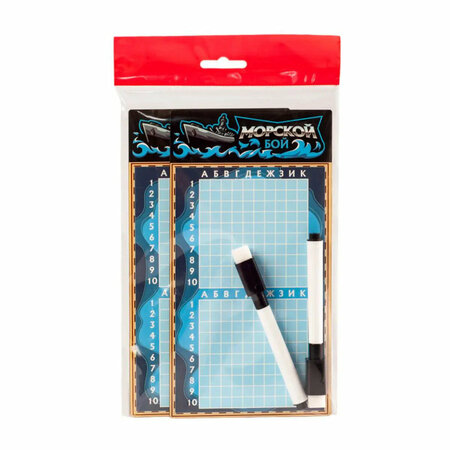 Игра настольная Морской бой в пакете с маркерами. Состав игры: игровые поля из древесного материала - 2 (10,5х20 см), маркер на водной основе - 2 Материалы: древесный материал, бумага, полимерный материал. Игра рекомендована для детей старше 7 лет и взрослых.