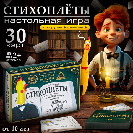 Читайте стихи и веселитесь! С помощью этой игры вы не только повторите стихотворения из школьной программы, но ещё как следует повеселитесь! Играйте, слушайте, побеждайте Участникам предстоит зачитывать строки с карточек. Но стишки эти необычные: в них пропущены некоторые слова и фразы, которые необходимо запикивать забавным петухом — пищалкой. А тот, кто догадается, что пропущено в стихотворении, — забирает карточку себе. И побеждает тот, кто наберёт больше всего карточек! Вы можете использовать только отрывки стихов из школьной программы или только сказки. Подойдут и любые другие стихотворения, например те, которые сейчас учат дети. В ходе игры им будет интереснее и проще их запомнить!