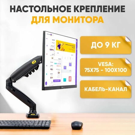 Как известно, монитор - это один из самых важных компонентов любого компьютера. Но, как и любое другое устройство, он требует правильного размещения на рабочем столе. Именно поэтому мы представляем Вам наш новый настольный кронштейн для монитора NB F80, который поможет Вам комфортно работать за компьютером. NB F80 - это наклонно-поворотный кронштейн, который подходит для мониторов и телевизоров с диагональю от 17 дюймов до 30 дюймов и весом от 2 до 9 килограммов. Кронштейн для монитора имеет встроенную газовую пружину, которая позволяет легко перемещать монитор в любом направлении без усилий. Благодаря этому Вы сможете настроить положение монитора для самого комфортного обзора. Кроме того, кронштейн для компьютера обладает двумя способами крепления: струбциной и винтом. Это позволяет установить кронштейн на любую поверхность, включая столы из различных материалов. Кронштейн для монитора также имеет регулировку высоты и угла наклона, что позволяет настроить его под любые потребности пользователя. Важно отметить, что кронштейн для стола совместим с большинством мониторов и телевизоров, которые имеют отверстия VESA 75 x 75 и 100 x 100 миллиметров. Это делает держатель для монитора универсальным решением для большинства пользователей. Держатель для экрана является идеальным выбором для тех, кто ищет удобный и надежный кронштейн для своего монитора. Держатель для монитора на стол обеспечивает комфортное использование, легкость установки и регулировки, а также универсальность в использовании. Не упустите возможность приобрести этот качественный продукт уже сегодня!