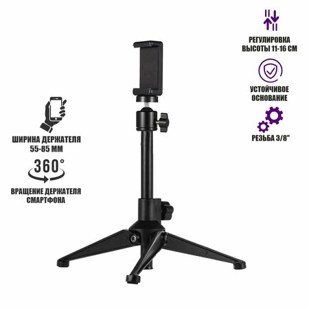 Компактные размеры стойки позволяют удобно разместить его на рабочей поверхности, не занимая много места, а регулировка штатива от 11 до 16 см. позволяет настроить необходимую и комфортную высоту.