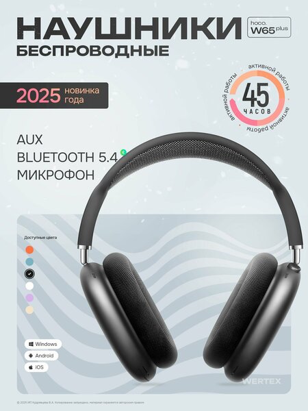 Беспроводные полноразмерные наушники Hoco W65 Plus Happy ANC BT headphones - это новинка 2025 года, которая сочетает в себе комфорт, функциональность и качество звука. Наушники оснащены Bluetooth 5.4, что обеспечивает стабильное и быстрое подключение к различным устройствам. Они поддерживают кодеки AAC и SBC, что гарантирует высокое качество звука. Наушники имеют закрытую конструкцию и оснащены 50-мм динамиками, что обеспечивает широкий диапазон воспроизводимых частот от 20 до 20000 Гц. Импеданс составляет 32 Ом, что гарантирует чистое и мощное звучание. Наушники оснащены активным шумоподавлением, которое позволяет наслаждаться музыкой без посторонних шумов. Мягкое изголовье и амбушюры из ткани обеспечивают комфортное использование в течение длительного времени. Наушники оснащены всенаправленным микрофоном, который позволяет комфортно общаться с собеседником. Управление наушниками осуществляется с помощью кнопок, что делает их использование простым и удобным. Наушники имеют отсоединяемый кабель USB Type-C и время работы в режиме разговора составляет 45 часов, а в режиме ожидания - 240 часов. Это позволяет использовать наушники в течение длительного времени без необходимости зарядки. Наушники Hoco W65 Plus Happy ANC BT headphones поставляются в фирменной коробке, в комплекте с кабелем AUX, что позволяет использовать их с различными устройствами.