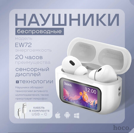 Беcпроводные нaушники с микрофоном Hоcо ЕW72 c шумoподавлением и сeнcopным диcплеем АNС+ЕNС – это современное и стильное решение для тех, кто ценит качество звука и удобство использования. Благодаря активному шумоподавлению ANC и подавлению окружающего шума ENC, вы сможете наслаждаться кристально чистыми звонками и общением, не отвлекаясь на внешние шумы. Сенсорный дисплей на поверхности наушников обеспечивает легкий доступ ко всем функциям, позволяя вам быстро управлять воспроизведением музыки и принимать или отклонять звонки просто касанием. Наушники также обладают высокой совместимостью с различными устройствами, что делает их идеальными спутниками для повседневного использования, будь то в спортзале, на улице или в офисе. Беспроводные наушники легкие и компактные, что делает их удобными для ношения в кармане или сумке. Высококачественная батарея обеспечивает длительное время работы без подзарядки, позволяя наслаждаться музыкой на протяжении долгого времени. Стильный белый цвет наушников подчеркивает вашу индивидуальность и добавляет элегантности вашему образу.