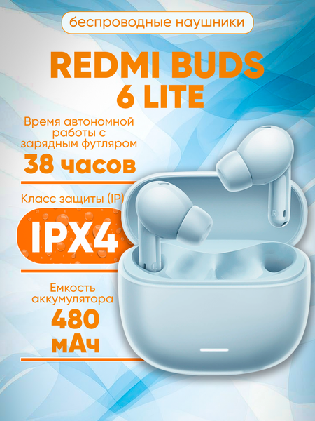 Наушники Redmi Buds 6 Lite, беспроводные, шумоподавление, сенсорное управление