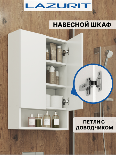 Шкаф навесной Эльбрус от LAZURIT - это компактное и максимально эффективное хранение для любого уголка вашего дома. Лаконичный подвесной шкафчик с двумя распашными дверцами на доводчиках гармонично впишется в любой интерьер. Шкаф с полками поможет вам навести порядок. Его можно установить: