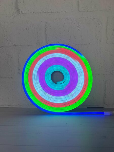 Гибкий неон зеленый: светодиодная неоновая лента 5 метров Гибкий светодиодный неон представляет собой I-образный герметичный шнур, изготовленный из ПВХ, внутри которого расположены светодиоды. ПВХ покрытие абсолютно устойчиво к влаге, что позволяет устанавливать ленту на улице. Равномерное свечение обеспечивает равномерное освещение и создает приятную атмосферу. Широкий спектр эксплуатации: гибкий неон зеленый используется для подсветки интерьеров, фасадов зданий, рекламных вывесок и т. д. Также изделие нередко применяется для тюнинга автомобиля или бассейнов. Технические характеристики: - Общее количество светодиодов: 600 - Напряжение: 12/220 В - Длина: 5 метров - Общая мощность: 10 Вт - Световой поток: 425 лм - Степень пылевлагозащиты: IP68 - Комплектация: неоновая лента 5 метров, адаптер 12/220В - Страна бренда: Россия Особенности и преимущества: - Термостойкость: гибкий неон зеленый сохраняет работоспособность при температуре от -40° до +50°С - Герметизация: ПВХ покрытие обеспечивает защиту от влаги и пыли - Срок службы светодиодов: до 50 000 часов Гибкий неон зеленый – это отличное решение для создания декоративной подсветки в различных помещениях и на открытых пространствах.