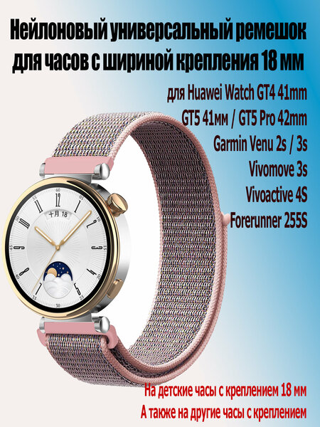 Garmin Forerunner 255S Music, Garmin Venu 2S, Garmin Vivomove 3S, Garmin Active S, Garmin Move 3s, Huawei Watch GT 4 41 мм, Xiaomi mi Watch 18mm, детские часы с креплением 18 мм и остальным моделям часов с шириной крепления 18 мм