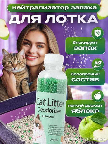 Нейтрализатор запаха кошачьей мочи для лотка, настоящая находка для каждого владельца! Многие считают что в доме, где живет котик обязательно, присутствует неприятный запах, ликвидатор запаха для кошачьего туалета разрушит этот стереотип. Поглотитель запаха для лотка борется с причиной неприятного запаха, а не просто маскирует его. Нейтрализатор запаха животных изготовлен из безопасных компонентов: активированный уголь, минерал сепиолит и минерал диатомит это эффективные натуральные антисептики, они блокируют развитие бактерий тем самым устраняя причину запаха. Блокиратор запаха для кошачьего туалета имеет аромат как и дезодорант для кошачьего лотка, но запах в отличие от дезодоранта очень легкий и не отпугивает котика, это очень важно так как у кошек обоняние в 14 раз сильнее чем у человека и резкий запах может напугать питомца. Ароматизатор для лотка в гранулах увеличит срок службы наполнителя в 2-3 раза, что облегчает уход за пушистым другом и позволит сэкономить на наполнителе для кошачьего туалета. Анти запах для кошек от мочи универсален, он прекрасно дополнит комкующийся, древесный и силикагелевый наполнитель, также его можно использовать без наполнителя под решетку, в таком случае возможно понадобится немного больше гранул, чтобы жидкость с ними контактировала. Ликвидатор запаха кошачьей мочи это эффективный и безопасный способ избавится от неприятного запаха в доме. Поглотитель запаха для лотка имеет легкий ненавязчивый аромат который практически незаметен и не беспокоит питомца, но при этом добавляет нотки свежести в помещение. Освежитель для лотка это долгожданная новинка в категории товары для животных которая подарит комфорт и уют вам и вашему питомцу