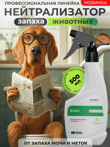 Нейтрализатор запаха животных Block. Эффективное средство для нейтрализации запахов домашних животных. Представляем Вам профессиональный ликвидатор запахов, средство для уборки за животными, специально разработанный для борьбы с неприятными ароматами, связанными с домашними животными. Наш продукт представляет собой уникальное средство для устранения запахов, обеспечивающее чистоту и свежесть в вашем доме. Средство от кошачьей мочи Block нейтрализует неприятные запахи животных, меток, кошачьей мочи, табака, испорченных продуктов, сырости, масел в воздухе, на тканевых, текстильных и твердых поверхностях. В отличие от освежителей воздуха связывает и удаляет запахи, а не маскирует их. Придает воздуху и обработанным поверхностям свежий, приятный, ненавязчивый аромат. Блокирует появление повторных запахов на период 7-14 дней. Средство основано на специальной формуле, которая нейтрализует неприятные запахи, оставляемые животными на ковриках, мебели, в лотке или клетке. Особенностью нашего продукта является его многофункциональность. Наш ликвидатор может использоваться не только для избавления от запахов кошачьей и собачьей мочи, но также для борьбы с запахами от других животных. Механизм действия нашего продукта, ликвидатора запахов прост и удобен в использовании. Просто распылите спрей на место с неприятным запахом, и он мгновенно начнет действовать, поглощая запах и оставляя приятный аромат. Не откладывайте устранение неприятных запахов на потом. Попробуйте наш профессиональный ликвидатор запахов уже сегодня и убедитесь в его эффективности! Создайте комфорт и чистоту в своем доме с помощью нашего уникального средства для устранения запахов домашних животных.
