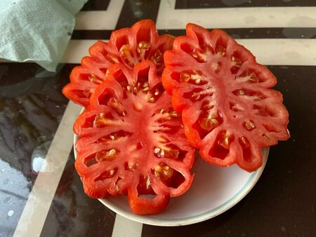 Достоинства:Много самого «тела помидоров» и мало лишних семян. Недостатки:Могут проявиться при посадке в 2025 г. Комментарий:Сажать будем первый раз и определим стоит ли сорт затрат на семена и трудозатрат на агротехнику.
