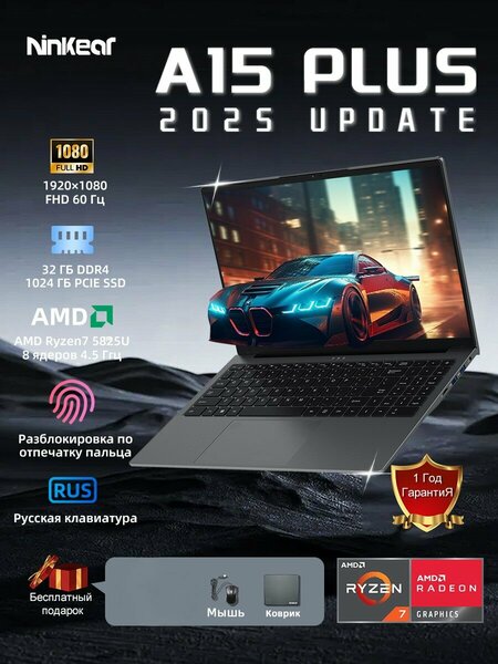 Ноутбук Ninkear A15 PLUS 5825U- это мощный и функциональный инструмент для работы и развлечений. ВАЖНО! Система Linux не поддерживается! Ноутбук оснащен 15,6-дюймовым IPS Full HD экраном с разрешением 1920x1080 пикселей. Матовый экран с частотой обновления 60 Гц обеспечивает четкое и яркое изображение. Аппаратная часть ноутбука включает в себя процессор AMD Ryzen 7 5825U с 8 ядрами и частотой 2 ГГц, 32 ГБ оперативной памяти DDR4 и 1 ТБ SSD. Это обеспечивает высокую производительность и быстродействие при работе с тяжелыми приложениями и играми. Встроенная видеокарта AMD Radeon™ Graphics позволяет комфортно работать с графическими и видеоредакторами Ноутбук поддерживает карты памяти microSD, что позволяет расширить объем хранения данных. Устройство оснащено сканером отпечатков пальцев, который обеспечивает дополнительную безопасность. Ноутбук изготовлен из пластика, имеет компактные размеры (357x227x23 мм) и легкий вес (1,77 кг), что делает его удобным для транспортировки. В комплект поставки входит ноутбук, зарядное устройство, мышь, коврик для мыши и инструкция по эксплуатации. Идеально подходит для просмотра фильмов, редактирования видео, учебы или поездок по работе. Компьютер с русской клавиатурой, в комплекте ещё мышь и коврик