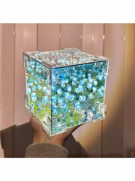 Ночник из зеркального куба с тюльпанами 12*12 см. Ночник из зеркального куба с тюльпанами, где функциональность сочетается с сказкой. Когда свет выключен, это зеркало, а когда свет включен, это ночник, скрывающий море цветов, создавая романтическую атмосферу. Вам необходимо собрать его своими руками - это увлекательное и интересное занятие. Ручной работы ночник с кубом зеркального тюльпана: Начните путешествие самовыражения с этим очаровательным DIY-проектом. Погрузитесь в синергию творчества и света, поскольку каждый шаг сборки приближает вас к созданию собственного уединения. Высококачественный материал: Куб зеркального лампочки с тюльпанами изготовлен из высококачественных материалов и прочен. Восемь углов лампочки оснащены силиконовыми подушками для обеспечения стабильности и сопротивления падения, гарантируя долгосрочное ежедневное использование. Многофункциональное использование: Идеально подходит для создания уютной атмосферы в спальне, гостиной или любой комнате, которой требуется элегантность. Наслаждайтесь успокаивающим светом ночника LED, наслаждаясь красотой зеркального фонаря с тюльпанами. Подарок в виде тюльпана для каждого: Будь то женщина, пара, ребенок или друг, этот романтический декоративный светильник с тюльпанами - идеальный подарок, который приносит радость и красоту в любую ситуацию. Отмечайте особые сл