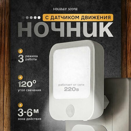 ночник в розетку с датчиком движения и регулировкой яркости