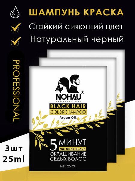 Шампунь краска для волос черная Nohau professional 2в1 - это революционная формула, которая за 5 минут обеспечивает 100% закрашивание седины. Обладает стойким эффектом, который сохраняется по длине от 2 до 6 месяцев. Окрашивание волос превращается в салонную процедуру не выходя из дома. Профессиональный окрашивающий шампунь Nohau бережно окрашивает волосы благодаря входящим в состав масел, подарит вашим волосам соблазнительный естественный цвет и блеск. -Стойкое окрашивание седых волос. 5 минут -Эффект после первого применения -Подходит женщинам и мужчинам -Идеально для бороды и усов -Естественный черный цвет -Экономичный расход -Простое и удобное нанесение