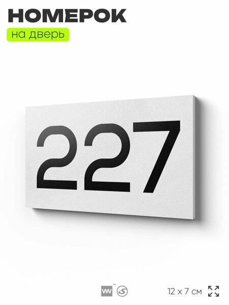 Номер на дверь 227, табличка на дверь для офиса, квартиры, кабинета, аудитории, склада, белая 120х70 мм, Айдентика Технолоджи