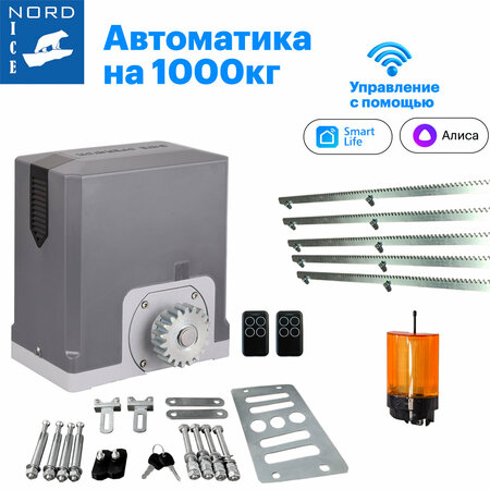 NI1000ZTurbo Комплект привода для откатных ворот. Встроенный WIFI модуль с управлением через приложение: Smart Life, Алиса, Маруся! Применены уникальные аппаратные решения - бесщеточный 3х фазный мотор постоянного тока с энкодером. В качестве энкодера используются датчики Холла, с помощью которых можно настроить плавный старт и остановку. Кроме того, датчики Холла позволяют произвести определения препятствий, быстро и самостоятельно обнаружения крайних положений концевых датчиков. Мощность увеличена при уменьшении массы и габаритов, интенсивность выросла с 30 до 60%, что позволяет использовать на высокоинтенсивных воротах. Технологии примененные в данном двигателе, позволяют плавно регулировать скорость перемещения полотна ворот, от минимально возможного до скорости 18мм/мин. Такой функционал на Российском рынке представлен только у привода NI1000ZTurbo. Корпус привода выполнен из высококачественного алюминиевого сплава, марки АК12. Внутренняя шестерня редуктора изготовлена на основании пластмасс применяемых в аэрокосмического индустрии, марка RA66, с наилучшими характеристиками по износостойкости. Применяемая смазка гарантирует работу оборудования от -40С до +65С и имеет сигнальную окраску для облегчения контроля качества. Трёхфазный шаговый двигатель, с медной обмоткой, червячный редуктор с механизмом ручной разблокировки привода и выходной шестерни, произведены из высококачественных металлических сплавов, делающих работу двигателя стабильной и надежной в широком диапазоне температур. В привод встроен Wi-Fi модель. Модели приводов Nord ICE обладают преимуществом перед другой автоматикой за счет платы, которая имеет расширяемый функционал, при помощи сервисного разъема. Плата TY-WFH установленная в специальный сервисный разъем, позволяет управлять автоматикой через Wi-Fi , с помощью приложения Smart Life из любой точки мира, вы можете открыть или закрыть ворота и также посмотреть историю. Данное приложение может быть синхронизировано с любыми системами умного дома : Алиса, Маруся, что позволяет управлять автоматикой при помощи голосовых команд, а также расширить возможности при помощи сценариев умного дома. 1. Разработано для применения частных и промышленных объектах; 2. Светодиодный сигнальный датчик, позволяющий контролировать работы привода; 3. Металлический узел разблокировки; 4. Регулируемая скорость. Технические характеристики: 1. Максимальный вес ворот: 1000 кг; 2. Рабочее напряжение: 220В, 50Гц; 3. Пусковой ток: 1А- 10А; 4. Скорость передвижения ворот: 2-18м/мин; 5. Память платы до 50 пультов; 6. Рабочая температура: -40°С ~ +60°C; 7. Интенсивность использования: 60%; 8. Встроенный энкодер; 9. Встроенная LED лампа. Состав комплекта: Привод для откатных ворот; Магниты концевых положений: 2шт; Анкерные болты: 4шт; Пульт управления: 2шт; Ключ разблокировки: 2шт; Монтажная пластина; Комплект зубчатой рейки для откатных ворот KV 8мм. Длина 1 м. 5 шт; Сигнальная лампа: 1шт.