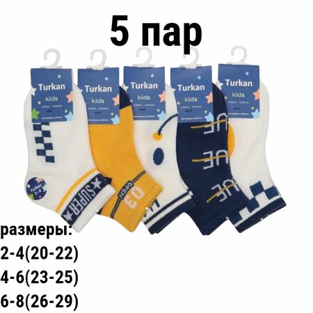 Комплект детских носков для мальчиков или девочек состоит из 5 пар. фирма Turkan Детские хлопковые носки. Подходят для повседневной носки, детского сада и занятий спортом. Благодаря хлопковому материалу ребёнку будет комфортно весь день. Носки плотно сидят на ножке не сдавливают и не сползают. Плотные носки, хорошо тянутся. Носки не линяют и не теряют форму, главное стирать до 30 градусов. размер 2-4 на ножку 12-13 см, размер обуви 20-22 размер 4-6 на ножку 14-15 см, размер обуви 23-25 размер 6-8 на ножку 16-18 см, размер обуви 26-29