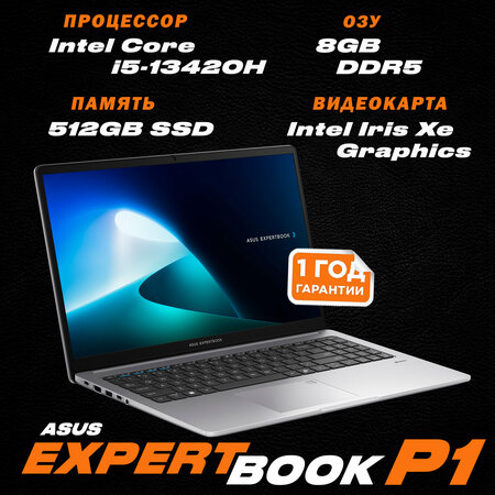 Asus ExpertBook P1503CVA-S70950 Asus ExpertBook P1503CVA-S70950 – это надёжный 15.6-дюймовый бизнес-ноутбук, созданный для работы и учёбы. Оснащён мощным процессором Intel® Core™ i5-13420H, быстрой оперативной памятью 8 ГБ DDR5 и вместительным SSD 512 ГБ, что обеспечивает высокую производительность и мгновенный отклик системы. Экран 15.6" FHD IPS с антибликовым покрытием и яркостью 300 нит делает работу комфортной даже при ярком освещении. Лёгкий и прочный корпус соответствует стандарту MIL-STD-810H, что гарантирует долговечность и надёжность устройства. Для удобства подключения предусмотрены порты USB-C с поддержкой Power Delivery и DisplayPort, HDMI, RJ-45, а также современный модуль Wi-Fi 6 и Bluetooth 5.3. Ноутбук поддерживает расширение памяти и хранилища, имеет защиту TPM 2.0, сканер отпечатка пальца и шторку веб-камеры для безопасности. ✅ Основные характеристики: