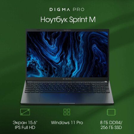 Digma Pro Sprint M — полноразмерный ноутбук, включающий все необходимые инструменты для работы и учебы. Процессор Intel Core i3 1115G4 без труда справляется с запуском офисных программ, графических приложений, некоторых сетевых игр. Есть возможность кастомизации под требования пользователя. Преимущества