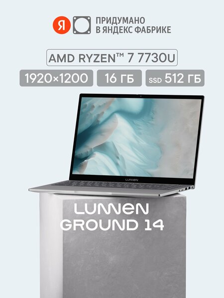 Lunnen — это бренд продуманной компьютерной техники и аксессуаров, придуманный в Яндексе. Lunnen Ground 14 — это мощный ноутбук в металлическом корпусе. Тонкий, лёгкий и прочный, он оснащён всем необходимым для работы и для развлечений. Большой 14-дюймовый экран с широким углом обзора, разрешением 1920x1200 и цветопередачей 100% sRGB отвечает за чёткое и детализированное изображение. Соотношение сторон 16:10 с увеличенным вертикальным пространством подходит для работы с большими объёмами информации — например, таблицами или вкладками. Технология IPS точно передаёт оттенки и контрасты — удобно и работать, и смотреть видео или фильмы. На борту ноутбука — мощный 8-ядерный процессор AMD Ryzen 7 7730U с 16 потоками, который подходит для земных задач любой сложности без пауз и долгой загрузки. Видеокарта AMD Radeon Graphics отвечает за плавное отображение динамичных сцен. Для эффективной работы с графикой предусмотрено 16 Гб оперативной памяти DDR4. SSD на 512 ГБ вместит важное для исследований и экспериментов: от документов до программ и приложений. Подключить всё нужное для работы легко: для этого есть 3 USB-порта, разъём Type-C для зарядки и передачи данных, HDMI — для внешнего экрана и слот для microSD-карт. Аккумулятор ёмкостью 55 Вт⋅ч быстро заряжается и долго работает — до 7 часов в автономном режиме. Компактный зарядный блок удобно брать с собой в поездки и путешествия. Длинный 2-метровый магнитный провод удобно сворачивается, не перекручивается и не путается при транспортировке. Дополнительная опция — вход в систему по отпечатку пальца: чтобы приступить к экспедиции за горизонт быстро и в одно касание. С технологией Wi-Fi 6 подключение к интернету будет стабильным и быстрым. Встроенная камера на 2 Мп, чувствительный микрофон и 2 динамика подходят для видеозвонков — без искажений, с чистым и качественным звуком. Шторка-слайдер для камеры и сохранит приватность, и защитит камеру ноутбука от пыли и повреждений.