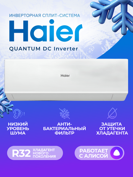 Сплит — система Haier Quantum Inverter имеет встроенный Wi-Fi модуль, который позволяет управлять работой через приложение «EVO» и голосовые помощники «Алиса» и «Салют» из любой точки мира. Haier - практичность, современный дизайн, комфортный микроклимат!