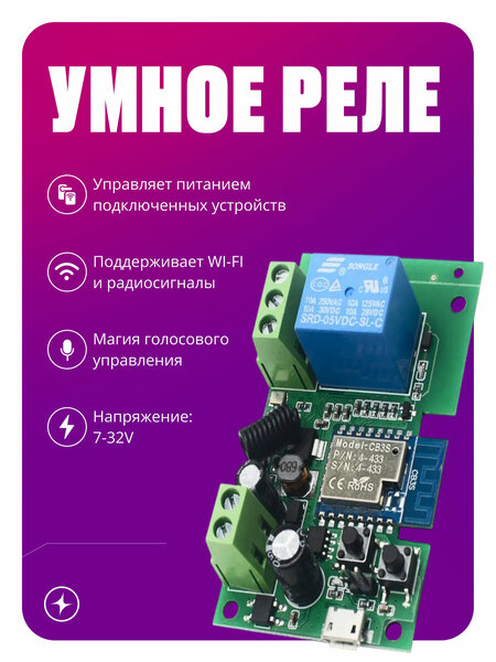 Умное реле с поддержкой Wi-Fi, RF и Bluetooth (7-32 В) – это многофункциональное устройство без корпуса, которое становится настоящим мозговым центром системы умного дома. Контроллер с сухим контактом сочетает в себе три ключевых качества: мощность (10А, 2200Вт), универсальность и простоту управления. Ключевые преимущества: - Мультипротокольная поддержка – возможна работа через Wi-Fi, RF 433 МГц и BLE; - Автономность – управление сохраняется даже при отключении интернета; - Гибкие сценарии – от простого включения света до сложных алгоритмов полива участка. Где пригодится это реле Wi-Fi+RF+BLE: - Управление гаражными воротами Больше не нужно выходить из машины, чтобы открыть ворота – достаточно голосовой команды: «Алиса, открой гараж». А если интернет вдруг пропадёт, вы всегда сможете воспользоваться RF-брелоком. - Автоматизация штор и жалюзи Представьте: утро, вы просыпаетесь, и по заранее заданному расписанию шторы сами плавно раздвигаются. - Контроль освещения и бытовой техники Автоматическое включение света при возвращении домой. - Управление насосами и поливом умного дома Реле Wi-Fi+RF+BLE способно работать с клапанами и насосами, позволяя автоматизировать полив участка или контроль водоснабжения. Простота установки – главный козырь этого контроллера: 1. Подключите питание (7–32 В). 2. Подсоедините управляемые устройства (свет, моторы, приводы). 3. Настройте реле через приложение: Tuya Smart, Digma Smart Life или Smart Life 4. Интегрируйте с голосовыми помощниками. Почему стоит выбрать эту модель: - С таким умным реле ваш дом становится: - Безопаснее – контроль всех систем в одном месте; - Экономичнее – рациональное использование ресурсов; - Удобнее – управление голосом или со смартфона. Это решение подходит для тех, кто ценит свое время и хочет сделать жилое пространство по-настоящему современным и технологичным.