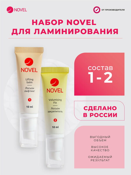 NOVEL Набор Составов 1 и 2 для Ламинирования ресниц и бровей Lifting Balm + Volumising Fix