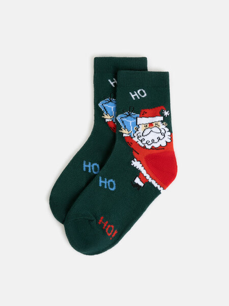 Новогодние детские носки с принтом — это стильная модель из нашей праздничной коллекции, которая добавит ярких красок и веселья в зимний гардероб вашего ребенка. Носки средней высоты обеспечивают комфортную посадку, идеально подходя как для домашних уютных вечеров, так и для активных прогулок. Изготовленные из хлопковой пряжи, они позволяют коже дышать и обеспечивают ощущение мягкости и тепла на протяжении всего дня. Модель украшена стильным рисунком Деда Мороза с подарком, что придает ей особое новогоднее очарование. Эти носки станут замечательным подарком на новогодние праздники, радуя детей и создавая весёлую атмосферу в каждом доме.