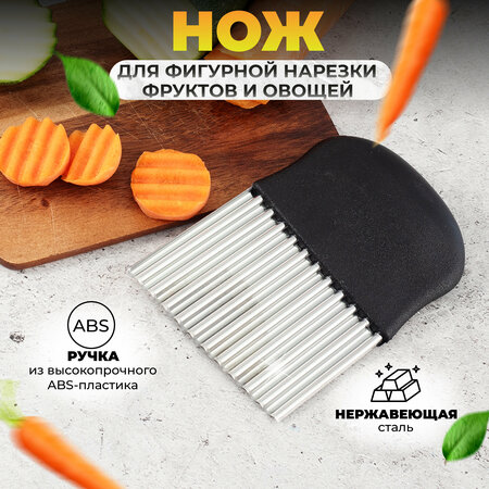 Представляем вашему вниманию нож для фигурной нарезки овощей! Этот фигурный нож для овощей - идеальный помощник на кухне для тех, кто любит добавлять изысканность и оригинальность в свои блюда. Выполнен из нержавеющей стали, этот нож фигурный для овощей обеспечивает превосходную прочность и долговечность. Благодаря своему материалу, он не подвержен коррозии и сохраняет свою остроту даже при частом использовании. Наш фигурный нож для нарезки овощей имеет удобную ручку, что обеспечивает комфортное и безопасное использование. Он легко ложится в руку, позволяя с легкостью контролировать процесс нарезки и создавать уникальные кулинарные шедевры. Особенностью этого ножа для фигурной нарезки является его возможность мыть в посудомоечной машине. Это делает его очень удобным в использовании, так как вам не придется тратить время на его ручную очистку. Фигурный нож для овощей - это не просто инструмент, это способ выразить свою креативность и сделать обычное блюдо настоящим произведением искусства. Не упустите возможность приобрести этот нож фигурный для нарезки овощей и добавить немного магии в свою кухню!