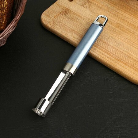 Нож для сердцевины Доляна Lаgооnа: удобство и функциональность Быстро и равномерно удаляйте сердцевину яблока с помощью ножа для сердцевины Доляна Lаgооnа. Аккуратный вырез в форме цилиндра С помощью этого ножа вы сможете легко и быстро удалить сердцевину яблока, оставляя аккуратный вырез в форме цилиндра. Это позволит вам удобно заполнять его начинкой и нарезать яблоко для дальнейшей сушки или использования в выпечке. Прочная и долговечная сталь Лезвие и рукоятка ножа изготовлены из нержавеющей стали, что гарантирует прочность и долговечность изделия. Удобная нескользящая ручка Нож оснащен нескользящей ручкой, что обеспечивает надежный и удобный хват во время использования. Мытье в посудомоечной машине Благодаря этому, нож для сердцевины Доляна Lаgооnа легко очищается после использования и не требует особого ухода. Технические характеристики - Длина лезвия: 12 см - Высота: 2 см - Ширина: 2,3 см - Материал рукоятки: сталь - Материал лезвия: сталь - Цвет: голубой металлик - Назначение: для удаления сердцевины - Количество в наборе: 1 шт. Выбирая нож для сердцевины Доляна Lаgооnа, вы получаете надежный и функциональный инструмент для быстрого и аккуратного удаления сердцевины яблока, который станет незаменимым помощником на вашей кухне.