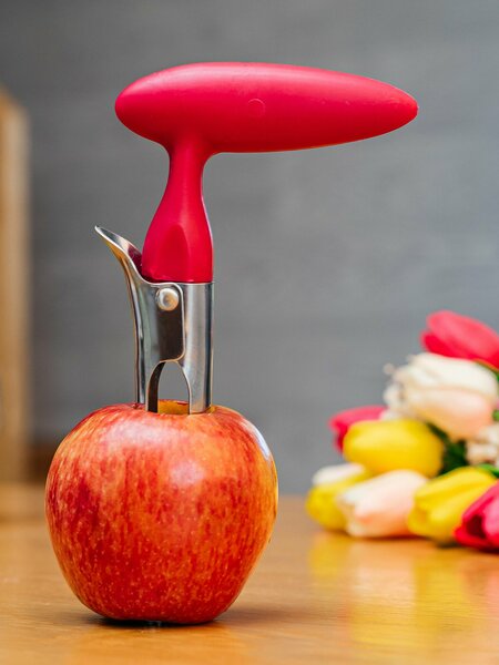 Достоинства:замечательное приспособление, легко убрать вынутую сердцевину. Пользуюсь и радуюсь. Лучше подходит для крупных плодов
