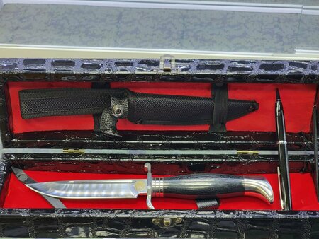Нож с чехлом в подарочном футляре и ручка -нож красная