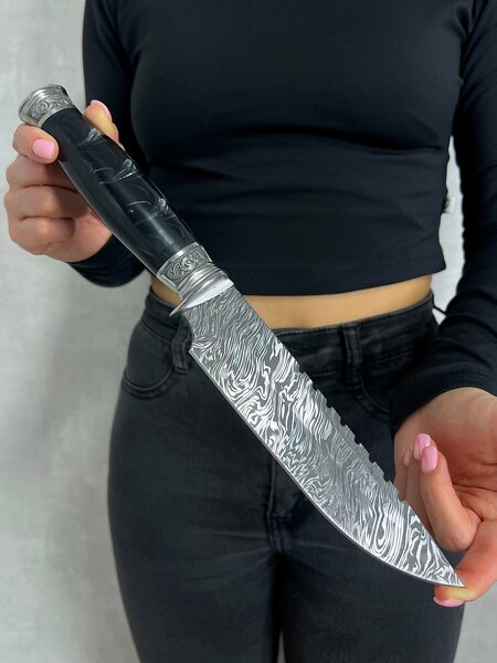 Охотничий нож в стильном дизайне - это отличный подарок для туриста, охотника, автомобилиста, рыбака, дачника, коллекционера. Этот спортивный нож станет незаменимым помощником, он выполняет все те функции, который должен выполнять настоящий, надежный, крепкий туристический нож. Лезвие ножа очень острое, долго держит заточку и не требует дополнительного ухода. В комплект входит прочный, влагостойкий чехол, который защищает лезвие от повреждений. Для удобства есть возможность закрепить ножны на пояс с помощью петли. Лезвие клинка длиной 17 см изготовлено из высококачественной, нержавеющей, крепкой стали марки 65х13, подойдет для любого вида работ. Сбалансированная твердость позволяет заточить нож даже в полевых условиях. Мощный обух, толщина лезвия 3 мм выдерживает сильные нагрузки и гарантирует долговечность. Удобная рукоять выполнена из эпоксидной смолы размером 14,5 см крепко фиксируется в руке, не выскальзывает при работе даже в экстремальных условиях: в дождь, снег, жару или холод. Идеально сбалансированный вес ножа 295 гр. способствует удобной работе: приготовление пищи, разделки дичи, забоя КРС и тд. Нож охотничий для туризма и рыбалки – это профессиональный инструмент, который пригодится каждому путешественнику и любителю активного отдыха, верный помощник для настоящего путешественника и любителя активного отдыха!