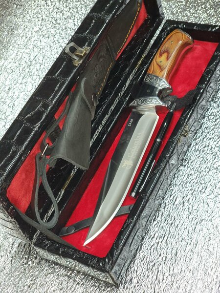 Название: Нож туристический разделочный , SA 59 в чехле ножнах и подарочный черный кожаный футляр, ручка нож в подарок. Описание: Это надежный и удобный нож, который станет вашим незаменимым помощником в туристических походах и на охоте. Он изготовлен из высокопрочной стали и имеет удобную деревянную рукоять, что обеспечивает комфортное использование одной рукой. Общая длина ножа - 27 сантиметров, длина клинка - 15 сантиметров, а вес изделия - 250 граммов. В комплекте с ножом идут ножны и черный футляр из кожи, которые обеспечивают надежную защиту и хранение инструмента. Футляр удобен для переноски ножа и быстрого доступа к нему в нужный момент. Заказывая этот туристический нож, вы получаете функциональный и качественный инструмент для своих приключений. Этот нож станет надежным помощником на рыбалке и охоте, а также поразит вас своей функциональностью и комфортом использования. Закажите туристический нож прямо сейчас и насладитесь его использованием!