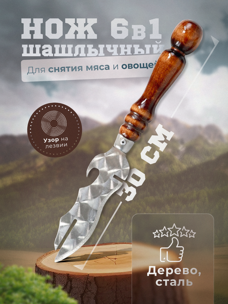 Нож-вилка 6в1 с деревянной ручкой из нержавеющей стали