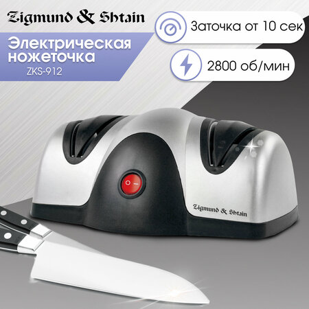 Электрическая ножеточка Sharpprofi ZKS-912 от компании Zigmund & Shtain – это незаменимый прибор для профессиональной заточки ножей в домашних условиях. Предназначена для европейских кухонных, туристических, спортивных и пр. ножей с симметричной двусторонней заточкой, а также для азиатских типа Сантоку. Затачивает ножи из нержавеющей, легированной и углеродистой стали. Подходит для заточки керамических ножей. Прибор оснащен 2-мя корундовыми самозатачивающимися дисками, изготовленными из смеси очень твердых синтетических сапфиров на бакелитовой и керамической связке. Бакелитовая связка обеспечивает пониженное теплообразование, эластичность и хорошую самозатачиваемость шлифовального диска, что способствует постоянному поддержанию его в хорошем рабочем состоянии. В керамической связке зерно закреплено очень прочно, поэтому такой диск имеет высокую термо- и износостойкость и долго сохраняет необходимый профиль рабочей кромки.