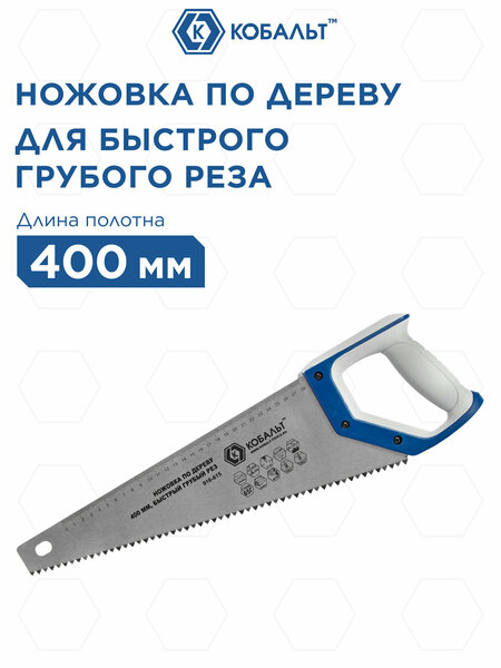 Ножовка по дереву КОБАЛЬТ 400 мм, шаг 7,5 мм / 3,5 TPI, закаленный зуб, 2D-заточка, быстрый грубый рез, 2-х комп. Рукоятка