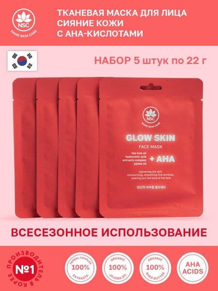 NSC Набор тканевых корейских масок для лица с AHA кислотами 5 шт