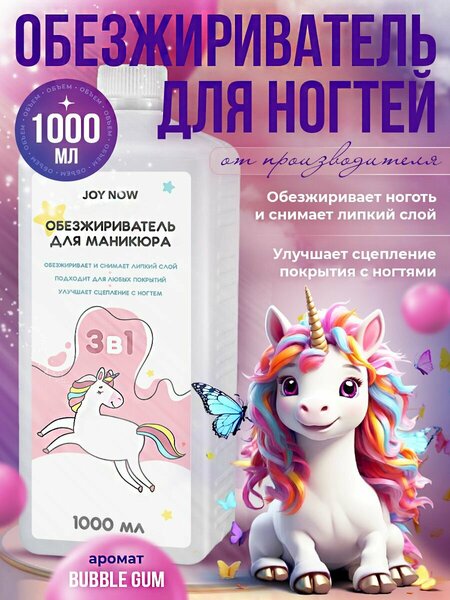 Профессиональная косметика обезжириватель для ногтей и снятия липкого слоя Бабл-Гам, Bubble gum, дегидратор для маникюра. дегидратор для ногтей бережно очищает ногти для маникюра с дальнейшим искусственным покрытием. Средство для ногтей помогает сцеплению материалов с ногтевой пластиной, предотвращает отслоение и скол материала. Не повреждает лак, гель лак на ногтях мастера. Можно использовать средство для снятия липкого слоя гель лак, обезжириватель не изменяет свойств верхнего покрытия. Дегидратор подходит для работы с гель лак, лак, гель краска, стемпинг, акрил, акригель всех искусственных материалов. Помогает очищать кисти от искусственных материалов и при моделировании ногтевой пластины. Применение на ногти: Для снятия липкого слоя и обезжиривания ногтей хорошо протрите ногтевую пластину салфеткой, смоченной в средстве JOYNOW. Наш обезжириватель найдете в разделе: красота, все для ногтей, косметика для ногтей, ногти уход. Объем: Обезжириватель для ногтей 1000мл. с удобной мерной шкалой. Универсальное средство в флаконе без дозатора и помпы является качественным дегидратором. Станет основным помощником и отличным подарком в работе профессиональных мастеров в салоне или в домашних условиях и заменит клинсер . Изопропиловый спирт является безопасным и гипоаллергенным , подойдет для обезжиривания натуральных и искусственных ногтей , для дезинфекции маникюрного стола и инструментов . Многофункциональная прозрачная жидкость 500 мл, 1л , 2л, с приятным запахом имеет антибактериальный эффект , предназначена для удаления с верхнего слоя ногтевой пластины пыли , жира и влаги , позволяет бафить ногти с максимальным результатом. Увеличивает сцепление с материалом при покрытии гель-лаком , акрилом или полигелем - воспользуйтесь им при процедуре нанесения базы и топа на ноготочки . Препятствует образованию сколов и отслаиванию , сохраняя стойкий шеллак долгое время. Если вы работаете в технике стемпинг, бесцветный товар подойдет для обработки скрапера - протрите его смоченной салфеткой