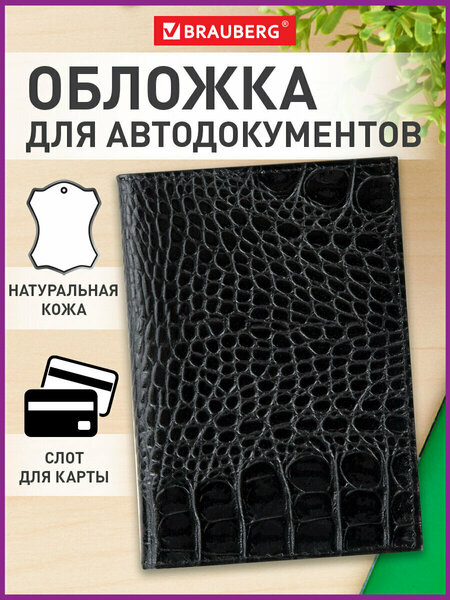 Обложка для автодокументов BRAUBERG – идеальный выбор для тех, кто ценит качество и стиль. Изготовленная из натуральной кожи черного цвета с текстурой под кожу каймана, она не только защищает ваши документы от загрязнения и изнашивания, но и придает им респектабельный вид. Эта обложка станет отличным подарком мужчине, который следит за порядком в своем автомобиле. С её помощью вы сможете удобно хранить автодокументы: 6 пластиковых карманов вмещают водительское удостоверение, СТС и страховой полис, а карман для пластиковой карты добавляет функциональности. Компактный размер обложки (95х125 мм) позволяет носить её в машине, обеспечивая легкий доступ ко всем важным документам. Обложка на паспорт мужская, выполненная из высококачественных материалов, станет неотъемлемым аксессуаром для каждой поездки. Не упустите возможность сделать стильный шаг к организованности. • Материал обложки: натуральная кожа. • Серия: Кайман. • Пол: универсальный. • Тиснение: нет. • Количество пластиковых карманов: 6 шт. • Количество карманов для кредитных карт: 1 шт. • Карман для водительских прав: да. • Застежка: нет. • Длина: 130 мм. • Ширина: 95 мм. • Цвет: черный. • Артикул производителя: 238189.