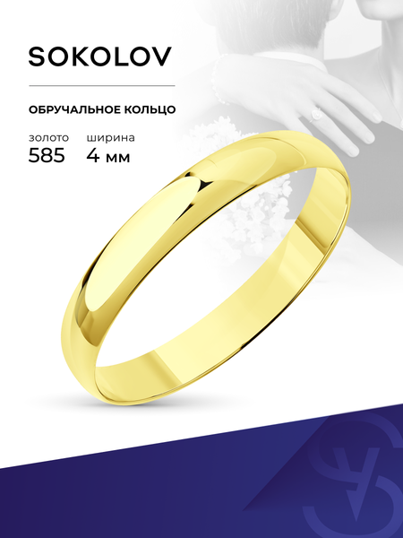 Обручальное кольцо из желтого золота 585 пробы от бренда SOKOLOV - лучший выбор для тех, кто хочет сделать особенным свадебный день и стремится к совершенству, желая выразить свои чувства с помощью уникального и изысканного ювелирного изделия. Ширина кольца 4 мм, кольцо не бухтированное (без выемки с внутренней части). Предлагаем широкий ассортимент размеров изделий: маленьких и больших. Изысканное и яркое золотое кольцо создано известным ювелирным брендом, который славится своим качеством и элегантным дизайном. Уделяется внимание каждой детали производства: вы можете быть уверены в его прочности и долговечности. Изделие сохранит первозданную красоту на протяжении многих лет. Вы можете купить два изделия и получить парный комплект для женщины и мужчины на свадьбу. Сочетание простоты и минимализма придает украшению уникальный шарм, который подчеркнет индивидуальность и стиль. Тонкое и стильное исполнение добавит шарма и элегантности любому образу. Станет символом вашей любви и счастья, а также памятным украшением на всю жизнь. Прекрасный подарок на особый день или любой праздник. Универсальное: для мужского и женского стиля: непременно привлечет восхищенные взгляды окружающих. Великолепное сочетание минимализма и роскоши делает его универсальным аксессуаром, который подходит для любого наряда и события. Украшение легко сочетается с любыми другими ювелирными изделиями. Идеальный выбор для создания незабываемых моментов в жизни, как знак ваших отношений и любви. Кольцо из золота 585 пробы будет идеальным дополнением к вашему свадебному наряду и будет напоминать о счастливом дне каждый раз, когда вы на него смотрите. Подходит для тех, кто предпочитает простые и изысканные украшения. Сохранит блеск и красивый вид на протяжении многих лет. Очень легкое в уходе: можно просто протереть его тряпочкой из микрофибры. Благодаря своей форме идеально сидит на пальце во время носки, подчеркивая его красоту. Гладкая текстура и удобная посадка на палец обеспечивают комфортное ношение на протяжении всего дня. Отличный подарочный вариант золотых обручальных колец как для молодой пары, только вступающей в брак, так и для взрослой, которая хочет обновить свои брачные кольца. Минималистичный дизайн и сияющий блеск этого колечка станут настоящим сюрпризом для невесты. Подарите вашему партнеру что-то особенное, что он будет носить с гордостью и радостью на протяжении всей жизни. Вес товара в карточке является средним и может отличаться от веса аксессуара, который вы приобретаете в нашем магазине. Гарантия на брендовое ювелирное изделие составляет шесть месяцев со дня передачи товара потребителю. Произведено в России.