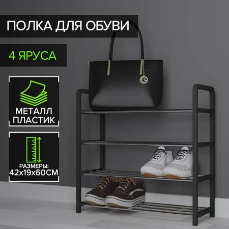 Обувница Доляна, 4 яруса, 42×19×60 см, цвет чёрный, 139018