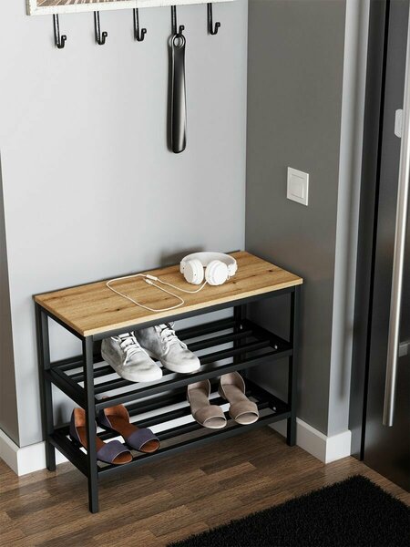 Обувница "IamLoft", металл, ЛДСП, ясень светлый, с сиденьем, высота 53, ширина 69, глубина 29
