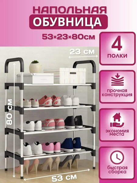 Металлическая обувница в прихожую с четырьмя полками — это практичное и стильное решение для хранения обуви. Этажерка обеспечивает удобный доступ к каждой паре, экономя место и поддерживая порядок в доме. Этот обувной стеллаж сочетает в себе долговечность и современный дизайн, что делает его идеальным выбором для коридоров любой планировки. Подставка под обувь в коридор выполнена из качественного металла, что гарантирует ее прочность и устойчивость даже при регулярном использовании. Благодаря компактным размерам конструкция подходит как для просторных прихожих, так и для небольших помещений, где важно рационально использовать пространство. Стеллаж для обуви узкий сохраняет внешний вид на протяжении долгого времени, оставаясь надежным помощником в организации вашего дома. Эта металлическая этажерка для обуви подойдет не только для размещения повседневной обуви, но и для сезонного хранения. Легкость конструкции позволяет без труда разбирать и перемещать ее при необходимости. Каждая полка для обуви выдерживает значительную нагрузку, а устойчивые ножки предотвращают скольжение или повреждение напольного покрытия. Подставка для обуви отличается универсальностью: она гармонично вписывается в классические или современные интерьеры благодаря лаконичному дизайну лофт. Такой обувной стеллаж идеально подходит не только для домашнего использования, но и для офисов или других общественных пространств. Организуйте комфортное хранение своих вещей с этой функциональной моделью. Практичная конструкция продумана до мелочей: каждая деталь создает максимальное удобство эксплуатации. Полки обеспечивают достаточное пространство между уровнями для размещения разных типов обуви — от сандалий до ботинок или спортивных моделей. Этажерка способствует сохранению порядка и упрощает уход за помещением.