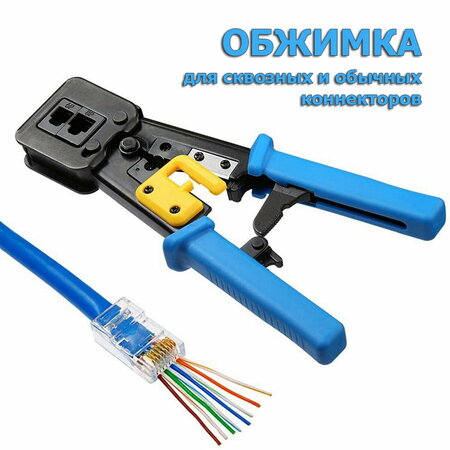 Обжимка для сквозных и обычных коннекторов RJ45, кримпер для обжима витой пары