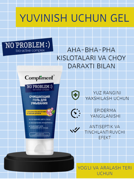 {"widgets":{"@card/MediaViewerManager":{"/content/page/fancyPage/defaultPage/mediaViewerManager":{"isOpen":false,"isAutoPlay":true,"currentIndex":0,"cspNonce":"N0l0fk9vG6J/sPwqAc5nYw==","mediaViewerId":"__galleryPlace__","previewImg":null}}},"meta":{"/content/page/fancyPage/defaultPage/mediaViewerManager":{"name":"@card/MediaViewerManager"}},"collections":{"mediaViewer":{"__galleryPlace__":{"id":"__galleryPlace__","entity":"mediaViewer","idx":0,"fullScreenStatus":false}},"review":{},"reviewGallery":{},"reviewItem":{},"transition":{"tr_1531422328825895632":{"params":{"url":"https://market.yandex.uz/business--allureuz/200446940"},"type":"url"},"tr_3147937395101195700":{"params":{"productId":"34292002","skuId":"102022500649","businessId":"200446940","isBusiness":true,"oskuId":"4385050249"},"type":"ugcReviewsMediaNavigation"},"tr_17886742571519616335":{"params":{"slug":"ochishchaiushchii-gel-dlia-umyvaniia-compliment-no-problem-s-salitsilovoi-kislotoi-i-tsinkom-200-ml","productId":"34292002"},"type":"productCard"},"tr_5874937245817604012":{"params":{"businessReviews":"1","slug":"ochishchayushchiy-gel-compliment-ana-vna-rna-kisloty-chaynoye-derevo-dlya-umyvaniya-200ml","shopName":"Allureuz","productId":"34292002","skuId":"102022500649","offerId":"xFMUyl4FBQexpQSJBwCwvQ","businessId":"200446940","oskuId":"4385050249"},"type":"productReviews"},"tr_1391213049348074440":{"params":{"url":"https://partner.market.yandex.ru/business/200446940/assortment?offerId=019952"},"type":"url"},"tr_9425631466791510880":{"params":{"id":"mi_3488668345675857247","url":"https://avatars.mds.yandex.net/get-market-ugc/13077424/2a000001994b75636224af341bbb0104f5dc/orig","modelName":"Очищающий гель для умывания COMPLIMENT No problem с салициловой кислотой и цинком, 200 мл","imageName":"2a000001994b75636224af341bbb0104f5dc"},"type":"ugcMediaNavigation"},"tr_2023080619819630713":{"params":{"categoryId":"17437151","filtersMap":{"super-price-filter":"1"},"categorySlug":"sredstva-po-ukhodu-za-litsom"},"type":"superPriceBadge"},"tr_7755807750885633515":{"params":{"productId":"1161028476","skuId":"102022500649","offerId":"xFMUyl4FBQexpQSJBwCwvQ","businessId":"200446940","slug":"ochishchayushchiy-gel-compliment-ana-vna-rna-kisloty-chaynoye-derevo-dlya-umyvaniya-200ml"},"type":"productQuestionsLink"},"tr_11414473667846266518":{"params":{"deliveryType":"MARKET","skuId":"102022500649","offerId":"xFMUyl4FBQexpQSJBwCwvQ","oskuId":"4385050249","cc":"CgAQBoB95u0G","productId":"34292002","sponsored":false,"slug":"ochishchayushchiy-gel-compliment-ana-vna-rna-kisloty-chaynoye-derevo-dlya-umyvaniya-200ml","additionalParams":[{"name":"deliveryMarketTransitionOfferId","value":"xFMUyl4FBQexpQSJBwCwvQ"},{"name":"businessId","value":"200446940"}],"businessId":"200446940"},"type":"cardDeliveryConsoleTransition"},"tr_9937438655430093744":{"params":{"categoryId":"64605290","navnodeId":"64610596","productId":"34292002","skuId":"102022500649","slug":"ochishchaiushchii-gel-dlia-umyvaniia-compliment-no-problem-s-salitsilovoi-kislotoi-i-tsinkom-200-ml"},"type":"similarProducts"},"tr_2726634705833294786":{"params":{"url":"https://market.yandex.uz/search?hid=64605290&glfilter=7893318:14112887"},"type":"url"},"tr_4596629051255433215":{"params":{"url":"https://doctor.market.yandex-team.ru/offer-diagnostic?businessId=200446940&mainTab=KI&offerId=019952"},"type":"url"},"tr_6145341269448159917":{"params":{"url":"https://market.yandex.uz/search?hid=64605290"},"type":"url"},"tr_2388864490532791069":{"params":{"url":"https://market.yandex.uz/search?text=Compliment&glfilter=7893318:14112887"},"type":"url"},"tr_7380156842691782791":{"params":{"url":"https://market.yandex.uz/search?text=No%20problem&glfilter=12782797:29294470"},"type":"url"},"tr_7225788223890428842":{"params":{"skuId":"102022500649","slug":"ochishchayushchiy-gel-compliment-ana-vna-rna-kisloty-chaynoye-derevo-dlya-umyvaniya-200ml","businessId":"200446940","productId":"1161028476"},"type":"fullSpecsGrouped"},"tr_8224604074878950043":{"params":{"price":{"mainPrice":{"price":{"value":49000,"currency":"UZS"},"type":"discount"},"isPersonalDiscount":true,"discountPercent":18,"oldPrices":[{"price":{"value":60000,"currency":"UZS"},"type":"withoutDiscount"}],"absoluteDiscount":{"value":11000,"currency":"UZS"}},"personalDiscount":{"totalPriceBlockLines":[{"type":"price","priceColor":{"type":"black"},"text":"Цена для вас:","absolute":{"value":49000,"currency":"UZS"},"textColor":{"type":"black"}}],"personalDiscountBlockLines":[{"type":"price","priceColor":{"type":"black"},"text":"Обычная цена","absolute":{"value":60000,"currency":"UZS"},"textColor":{"type":"gray"}},{"type":"discount","priceColor":{"type":"red"},"absolute":{"value":10000,"currency":"UZS"},"text":"Со скидкой","percent":17,"textColor":{"type":"gray"}},{"type":"discount","priceColor":{"type":"red"},"absolute":{"value":1000,"currency":"UZS"},"text":"Ваши","percent":2,"textColor":{"type":"gray"}}],"discounts":[{"type":"personal","percent":2,"absolute":{"value":1000,"currency":"UZS"}},{"type":"base","percent":17,"absolute":{"value":10000,"currency":"UZS"}}],"transition":{"params":{"url":"https://market.yandex.ru/special/personal-promo"},"type":"personalPromoLink"},"titleText":"Вам скидка 2%"}},"type":"personalDiscount"}},"uniqueContentMark":{},"ultima":{},"category":{}}}