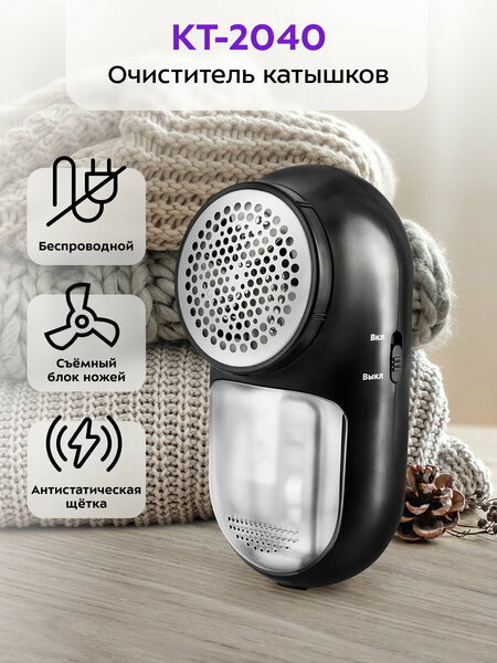 Иногда из-за частой и неправильной стирки или из-за примеси полиэстера в тканях, появляются катышки на одежде, из-за которых любимая одежда теряет свой первоначальный вид. Очиститель катышков Kitfort КТ-2040 позволит сделать её опять новой!