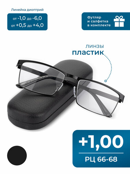 Очки для чтения 66-68 на широкое лицо (+1.00) мост 342 M2, с футляром, цвет черный, линзы пластик, РЦ 66-68