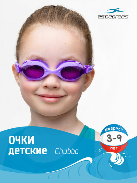 Внимание! Мы не можем принять данный товар обратно из гигиенических соображений. Детские плавательные очки Chubba от бренда 25DEGREES с литой оправой предусмотрены для малышей от 3 до 9 лет, они идеально подойдут для плавания в бассейне и на открытой воде. Забавный дизайн в виде рыбки с хвостиком и чешуйками не оставит равнодушным ни одного маленького пловца. Высококачественный силиконовый обтюратор не вызовет раздражения на детской нежной коже, он плотно и удобно сидит на лице, предотвращая попадание хлорированной воды в глаза. Поликарбонатные линзы с внутренней стороны покрыты антизапотевающим средством (anti-fog). УФ-фильтр на линзах защищает глаза от воздействия УФ-излучения. Удобный мягкий ремешок легко регулируется по длине с помощью боковых фиксаторов. Очки для плавания- это идеальный подарок на Новый год 2025 для любителей активного образа жизни. Не упустите возможность порадовать своих близких оригинальным подарком к новогодним праздникам. Рекомендации по уходу: Избегайте касаний внутренней поверхности линз, не протирайте их изнутри, так как линзы покрыты антизапотевающим средством (anti-fog); Избегайте воздействия высоких температур на очки (прямые солнечные лучи, горячий душ, сауна); После тренировки ополосните очки в холодной проточной воде; Храните в сухом виде в специальном чехле или в фирменном жестком футляре. Характеристики: Материал линз: поликарбонат Уплотнитель: 100% силикон Переносица: 100% силикон, литая Ремешок: 100% силикон, одинарный Цвет оправы: лиловый Цвет линз: фиолетовый Производство: Китай Тип упаковки: жесткий футляр, цветная инструкция